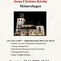Herzliche Einladung am 1. Advent, 01.12.2024, 18.00 Uhr, in der Jesus-Christus-Kirche Mitwirkende: Der Chor der Stufe 7 des Evangelischen Gymnasiums unter Leitung von Michel Otto Volme Sound Connecti...